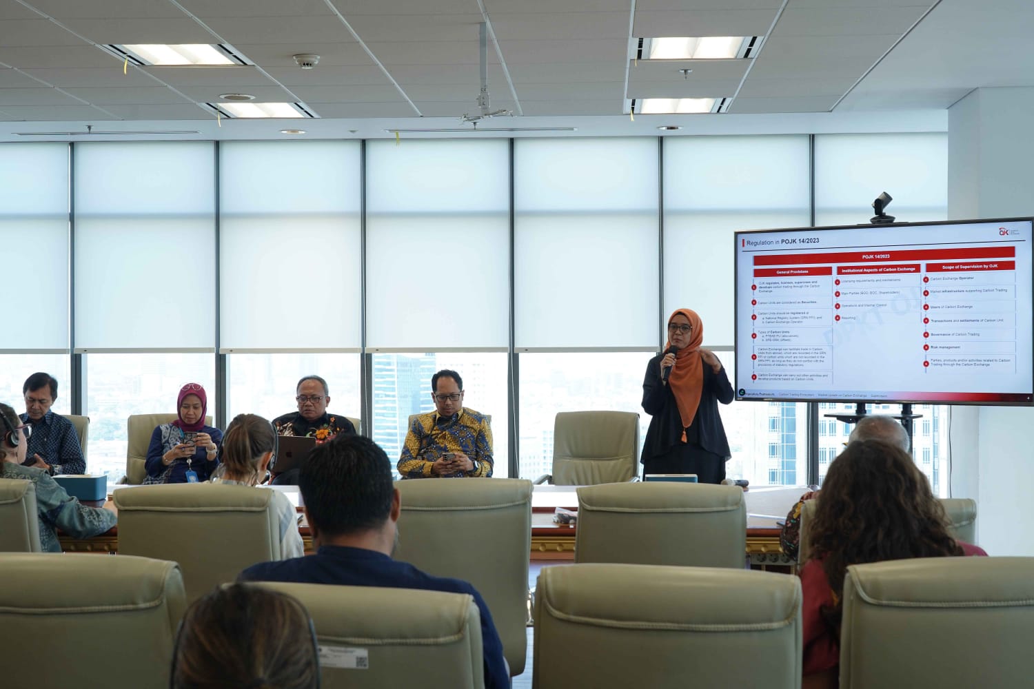 - Memfasilitasi proses peluncuran perdagangan karbon internasional pertama pada tanggal 20 Januari 2025. Sebagai tindak lanjut dari dibukanya perdagangan karbon internasional tersebut, maka beberapa regulasi dan kebijakan perlu dikembangkan untuk dapat membentuk permintaan pasar (supply and demand) yang memadai.