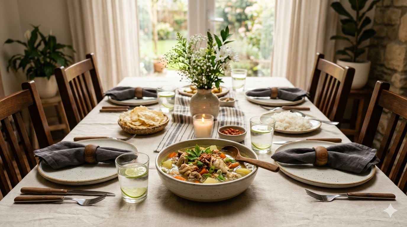 Namun, realitas sering kali punya skenario berbeda. Saat waktu berbuka tiba, tersajilah semangkuk besar sop ayam buatan rumah di meja makan, berdampingan dengan tempe goreng dan sambal kecap. Suami saya mengambil satu sendok kuah, menyeruputnya, lalu mengangguk.